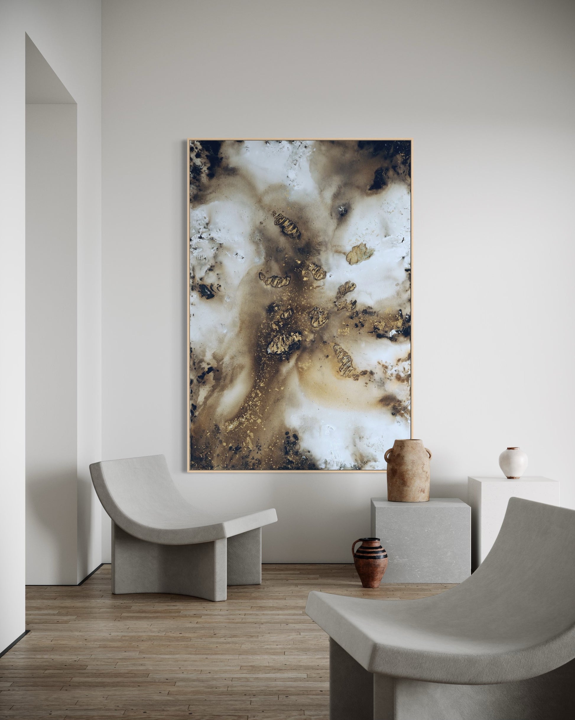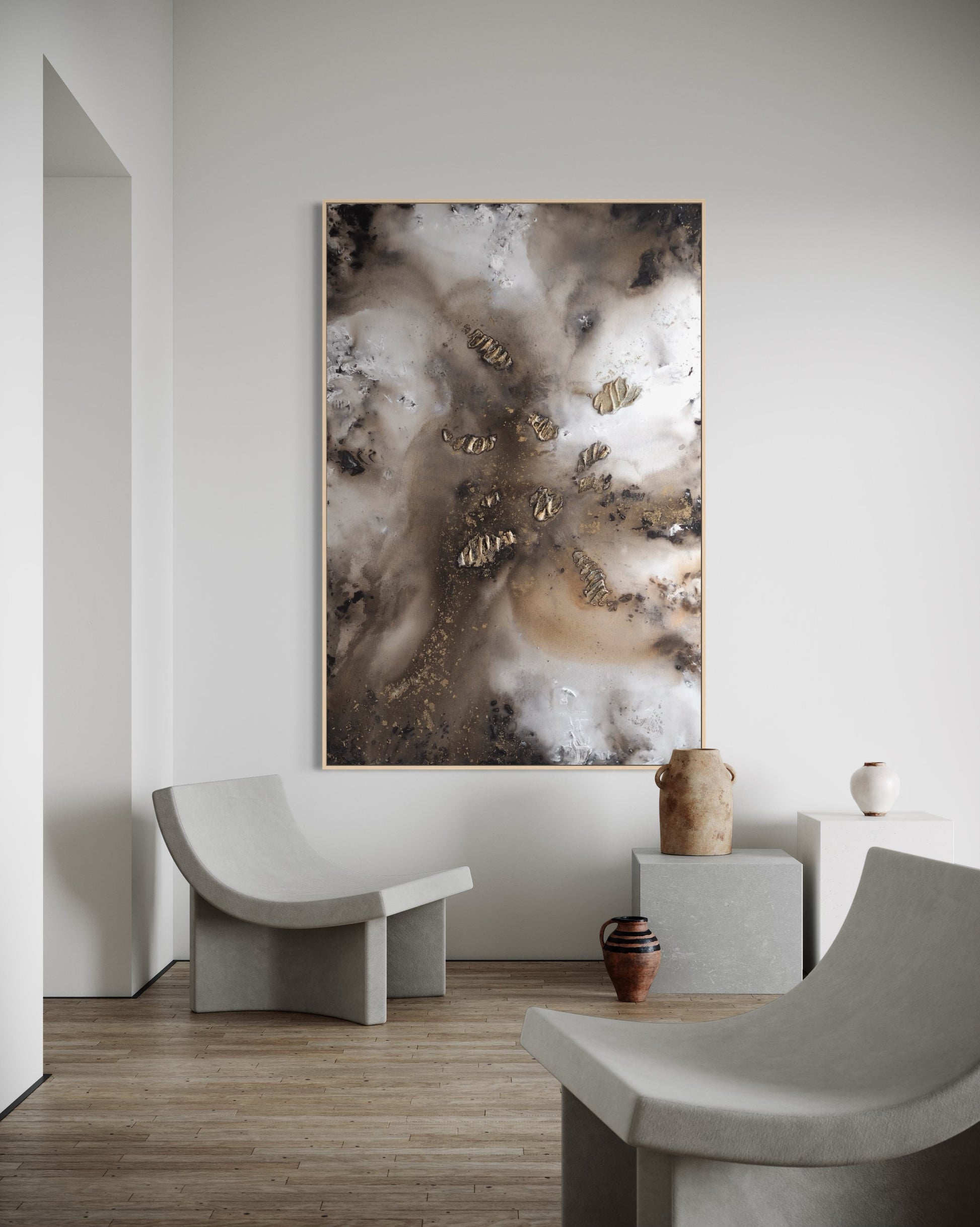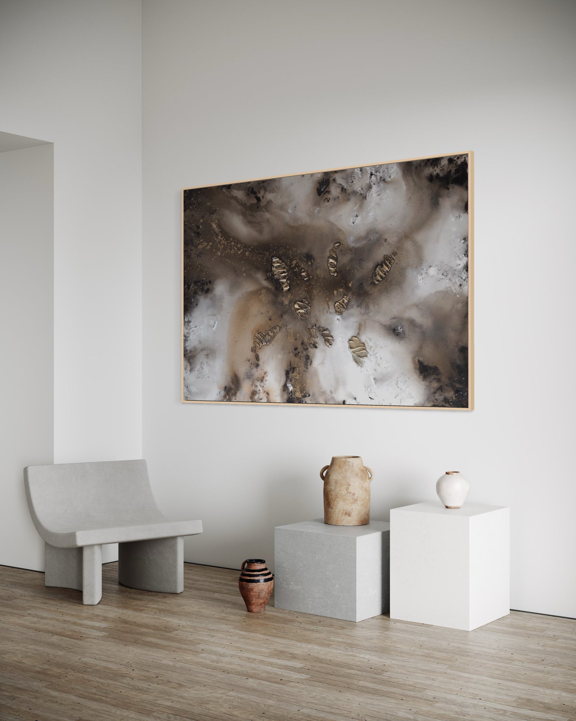 Ett harmonisk verk i jordnära toner med inslag av guld som fångar ljuset. Inspirerad av naturens värme.