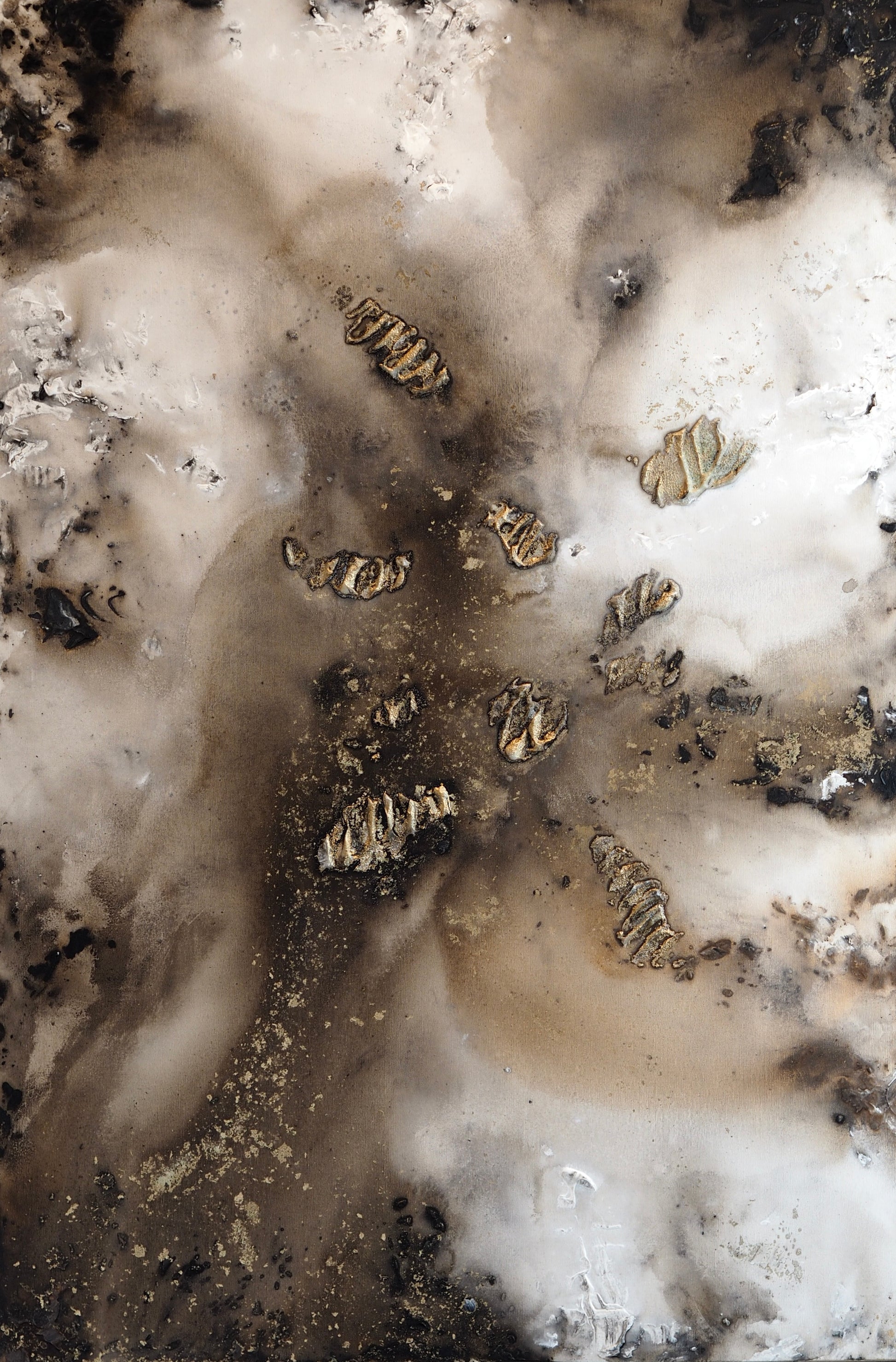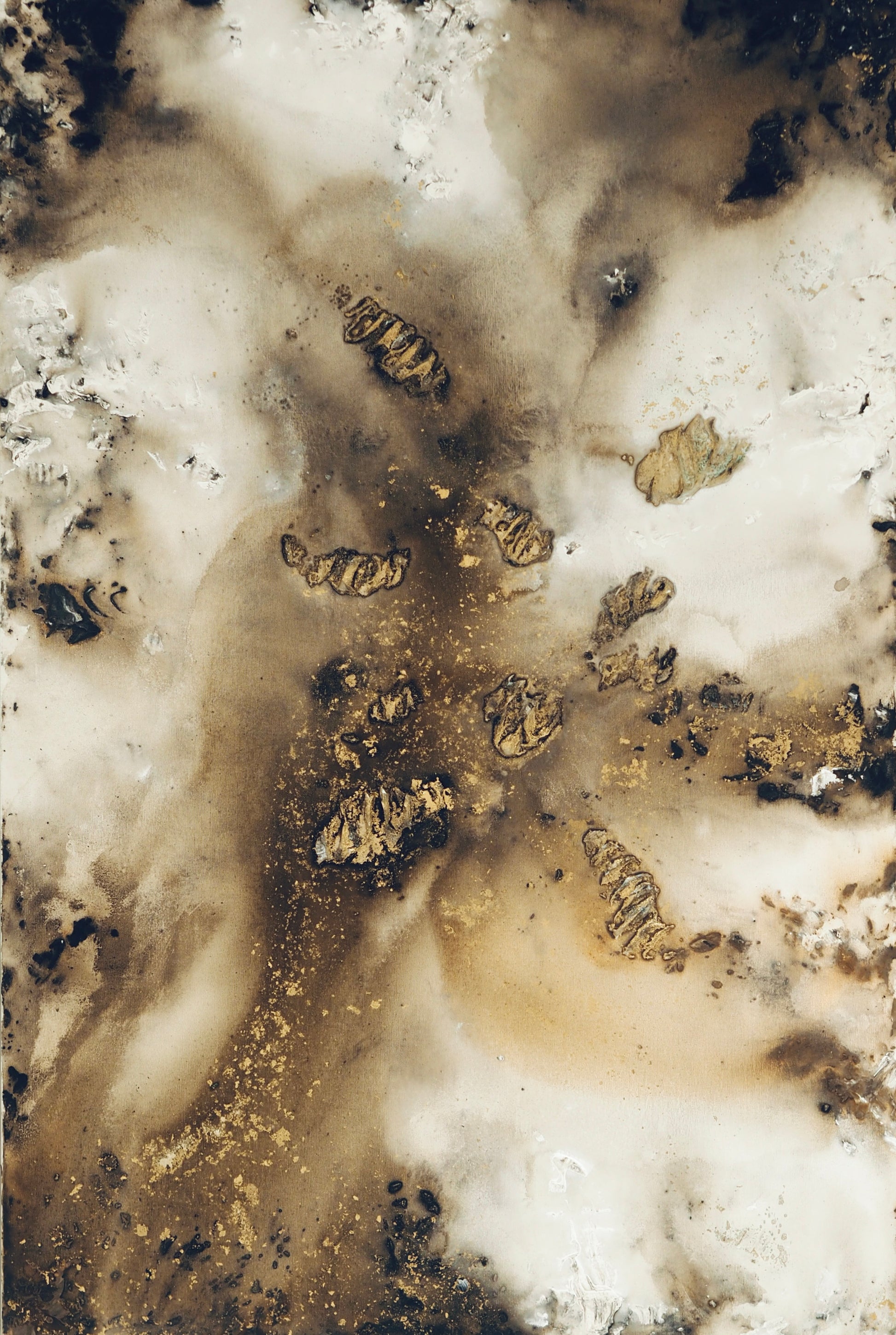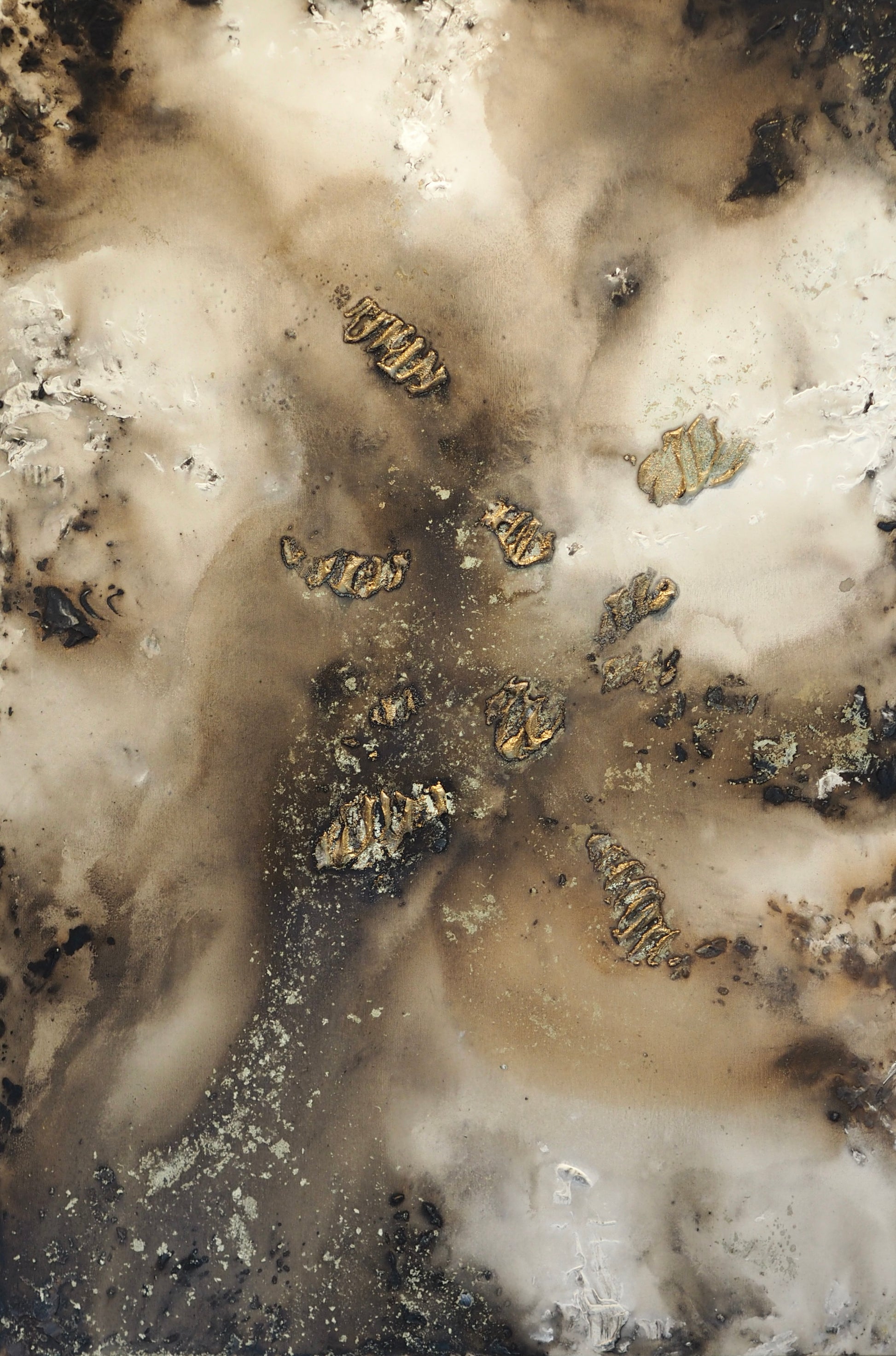 Ett harmonisk verk i jordnära toner med inslag av guld som fångar ljuset. Inspirerad av naturens värme.