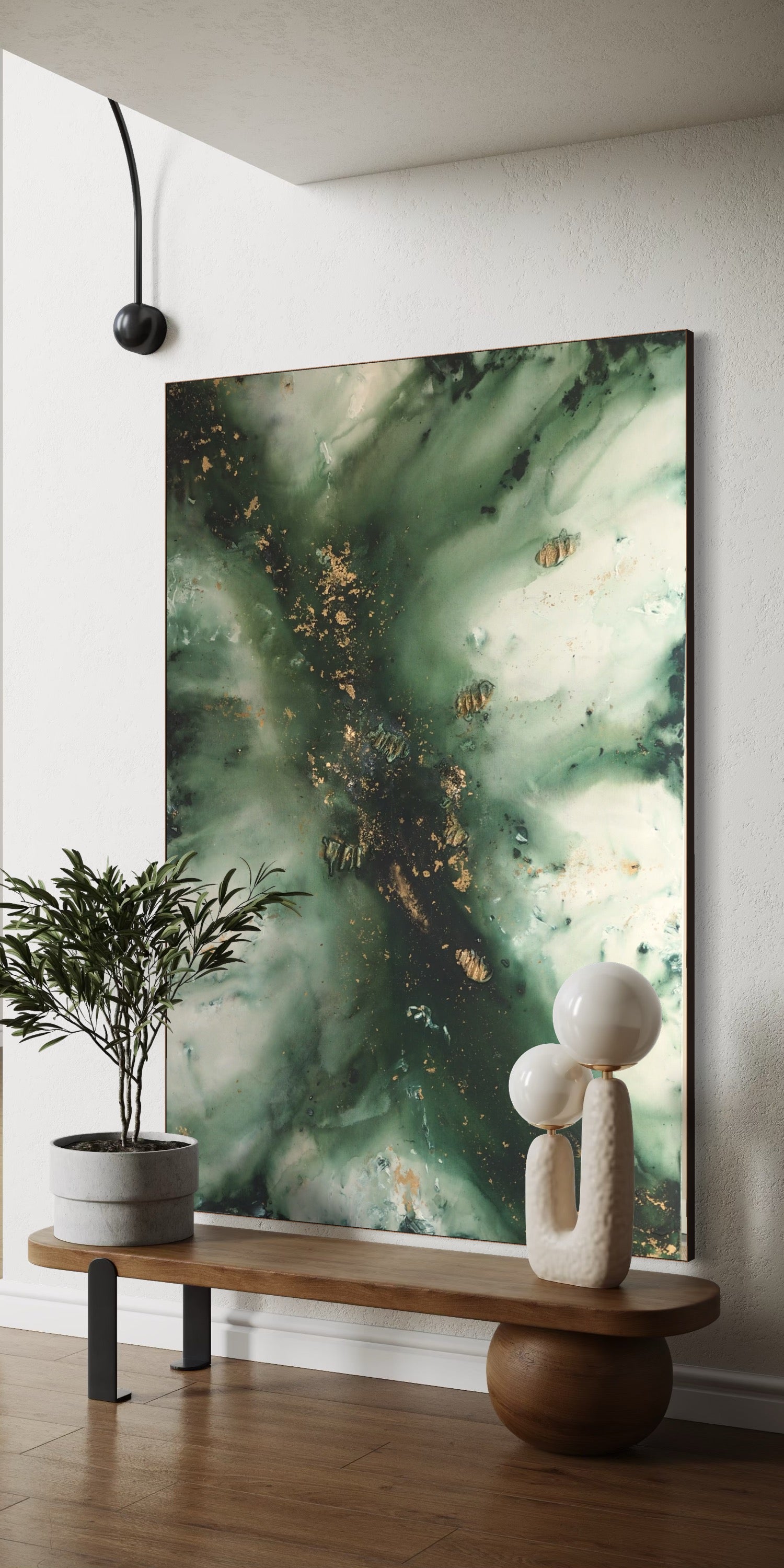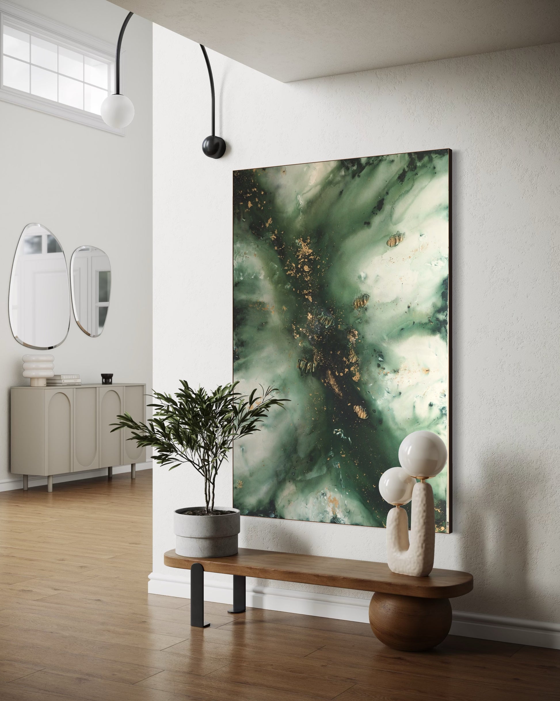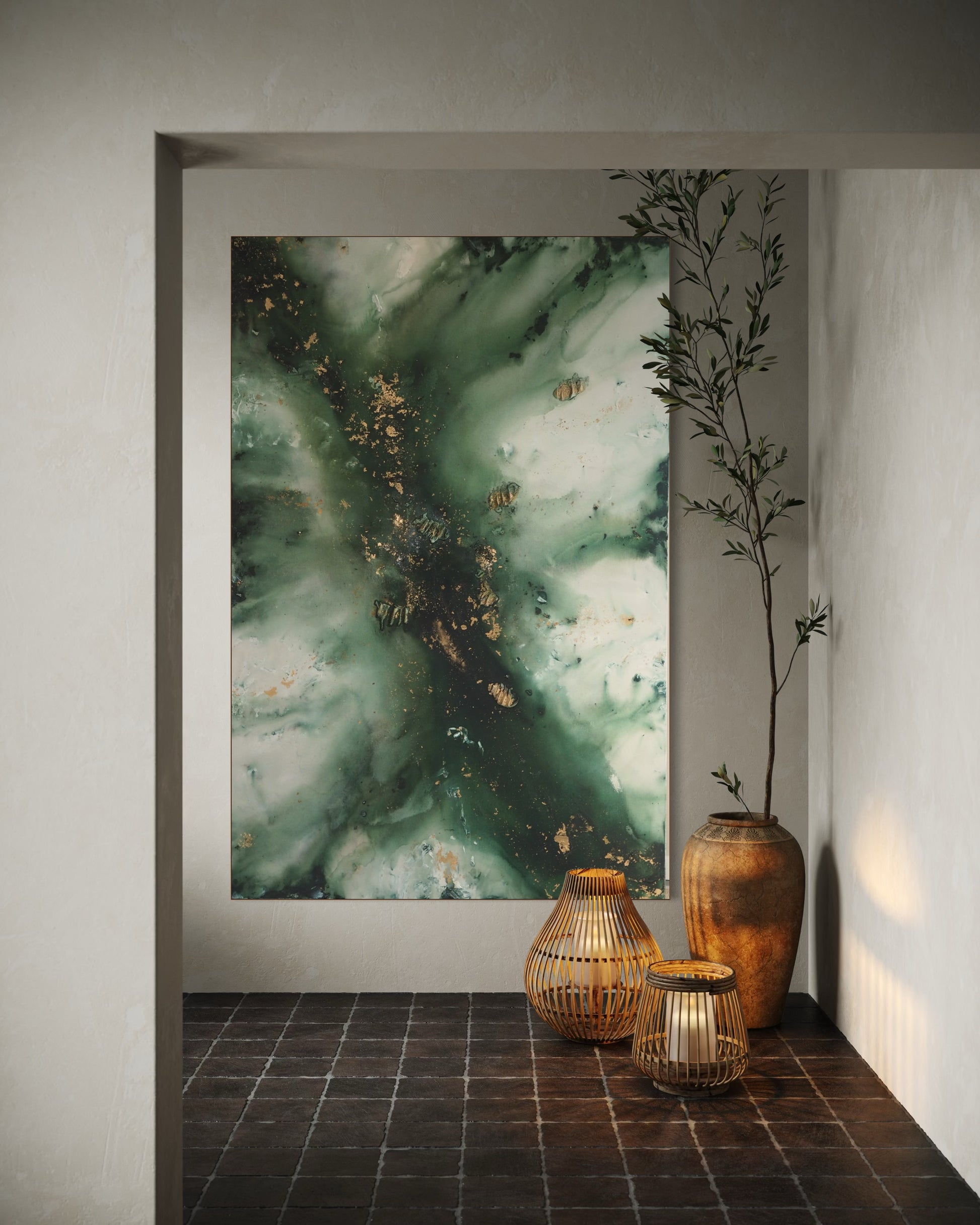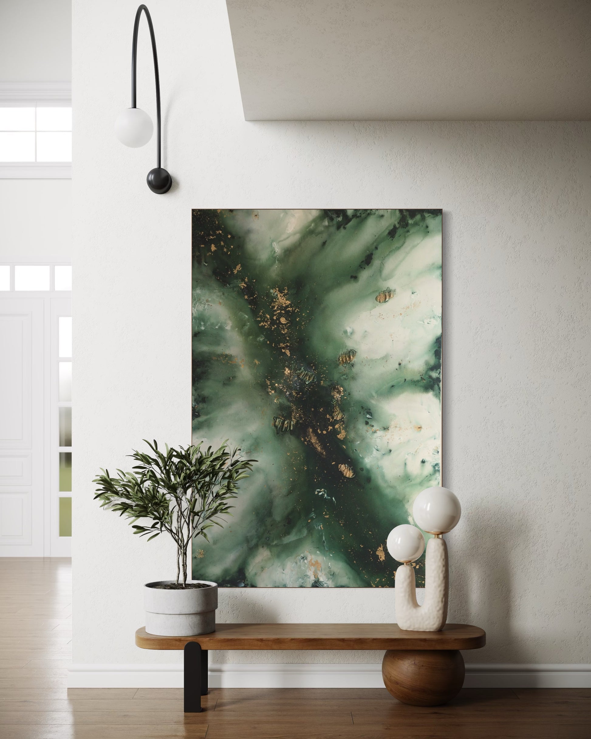 Denna målning fångar ett lugn och är målad i en levande grön nyans inspirerad av naturen.