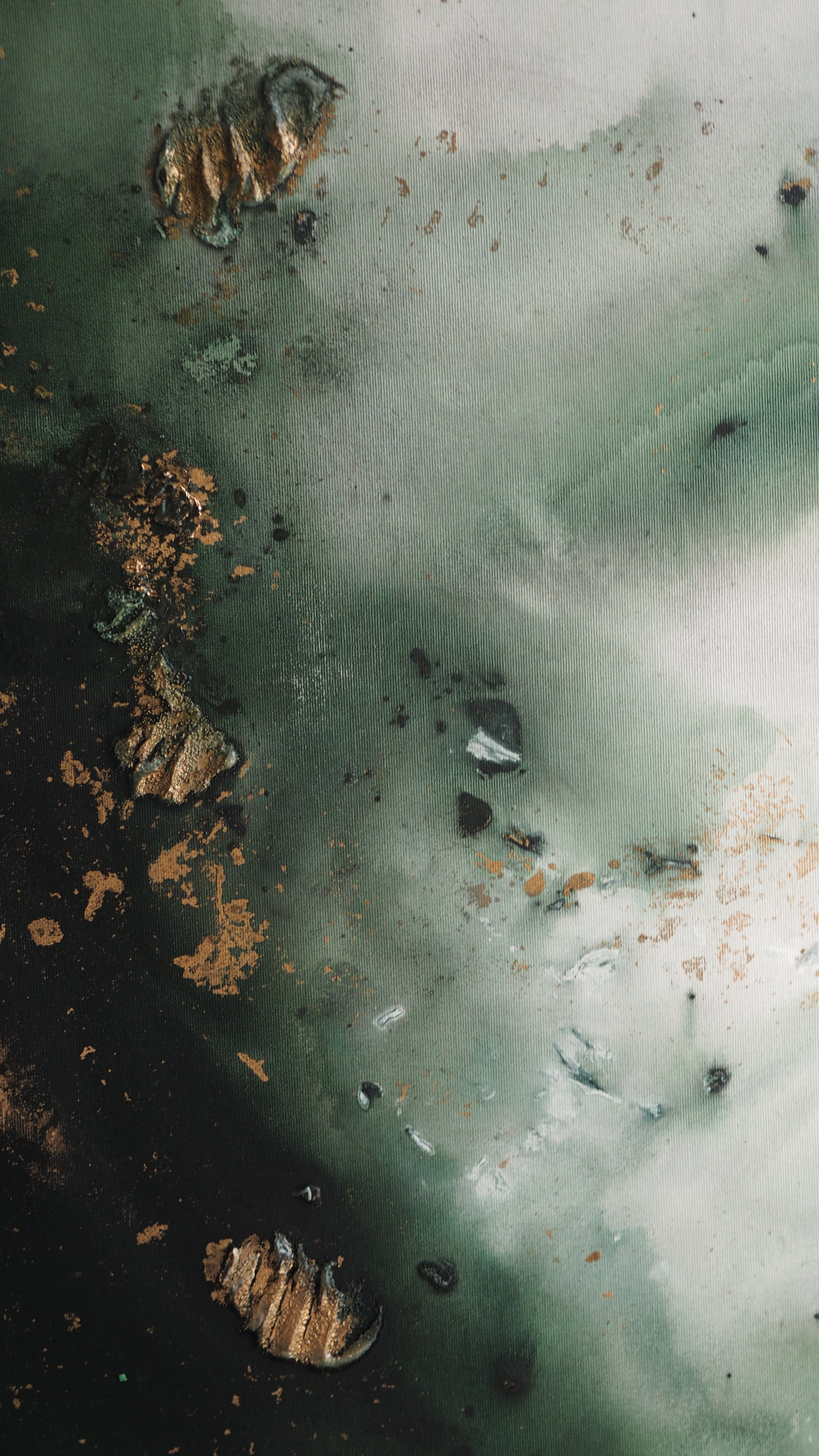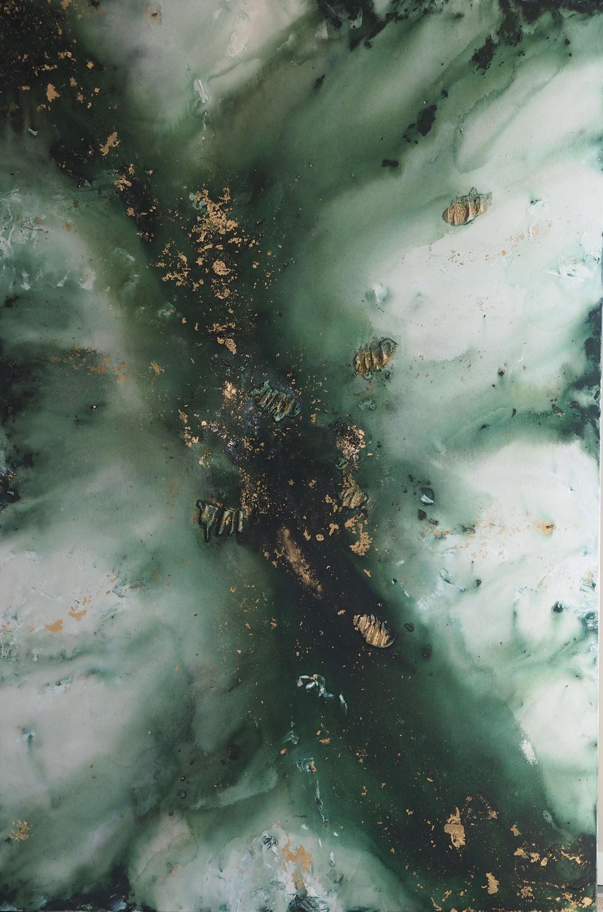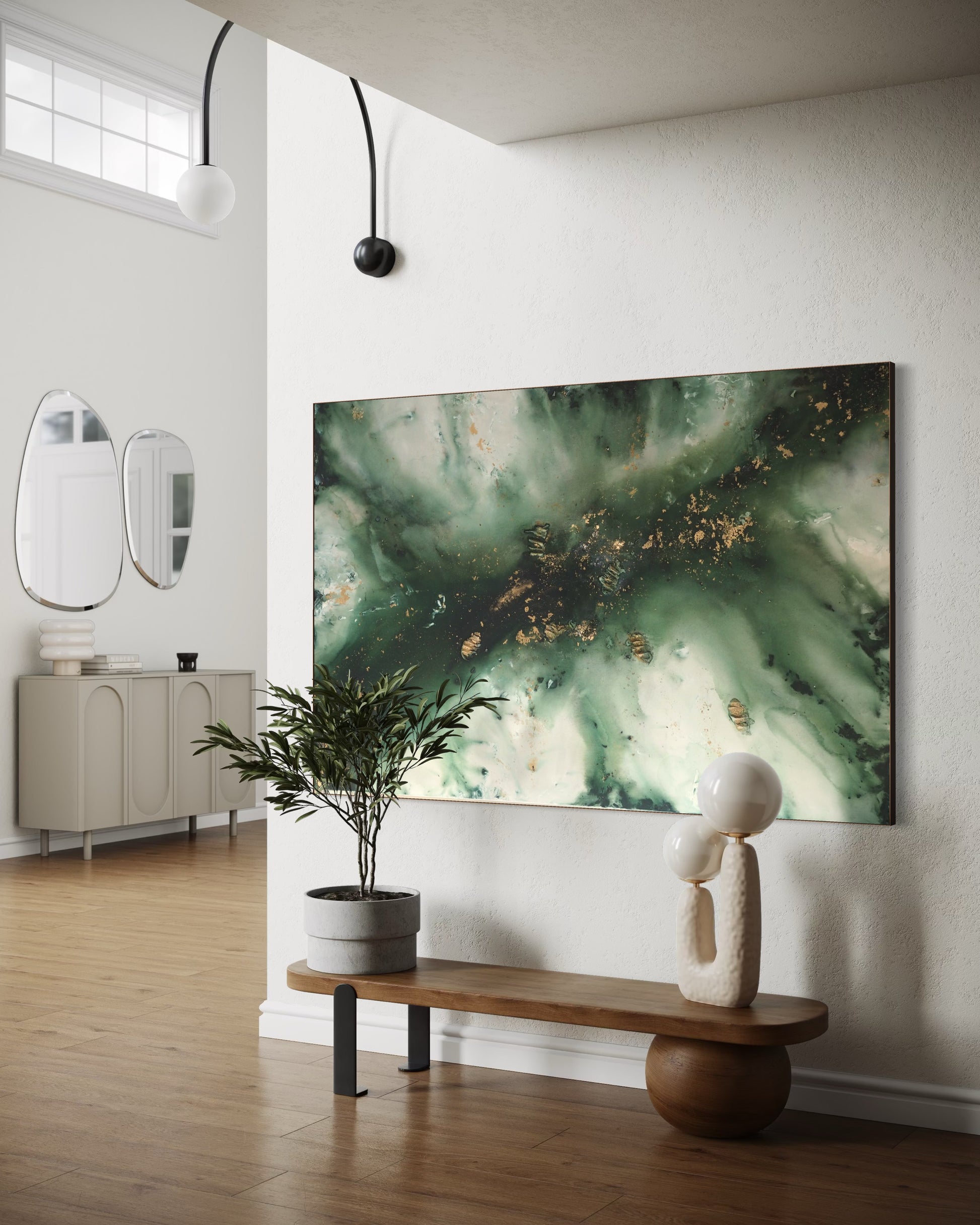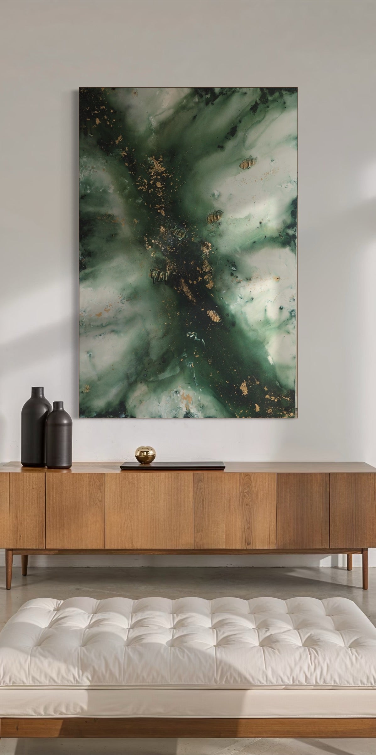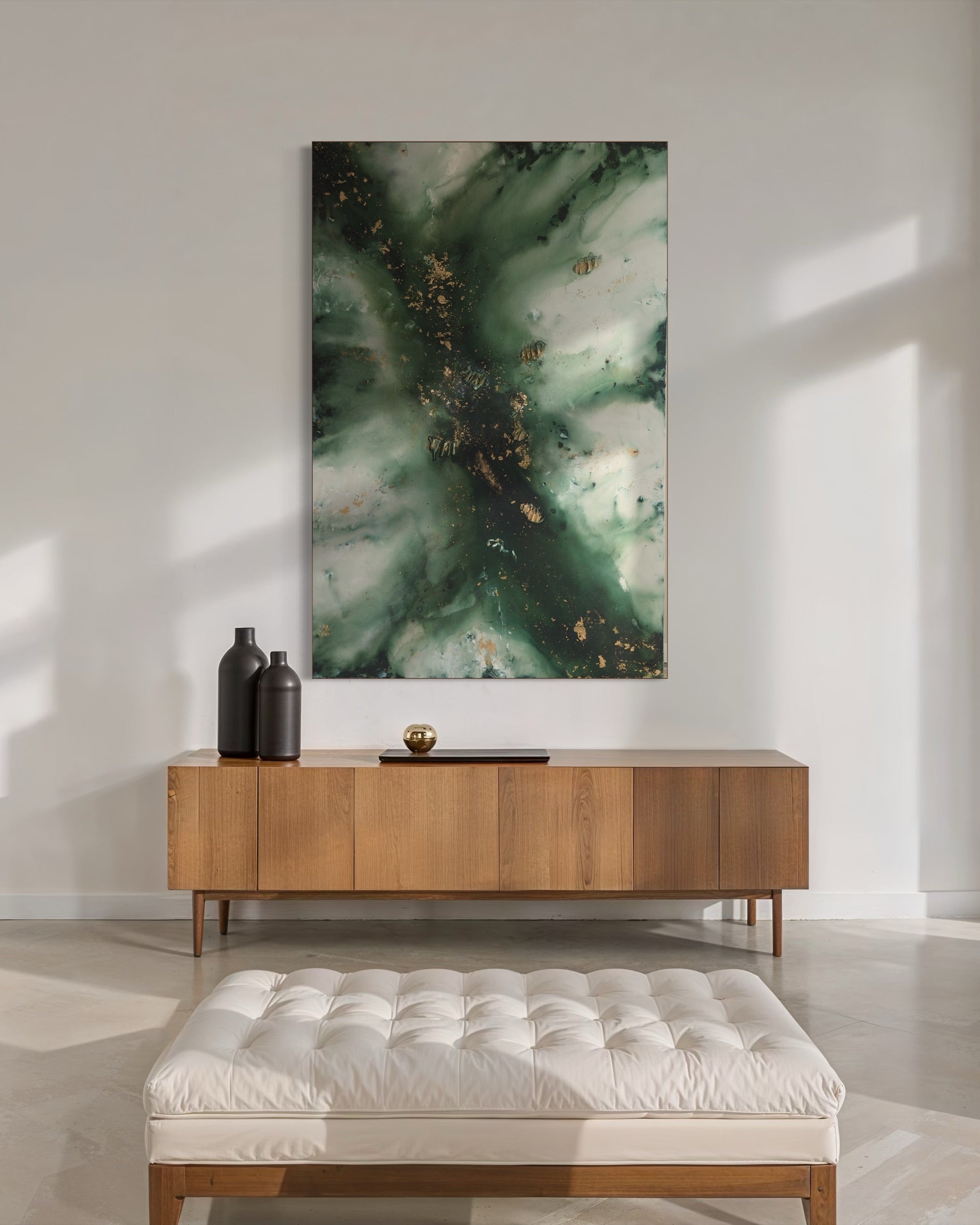 Denna målning fångar ett lugn och är målad i en levande grön nyans inspirerad av naturen.