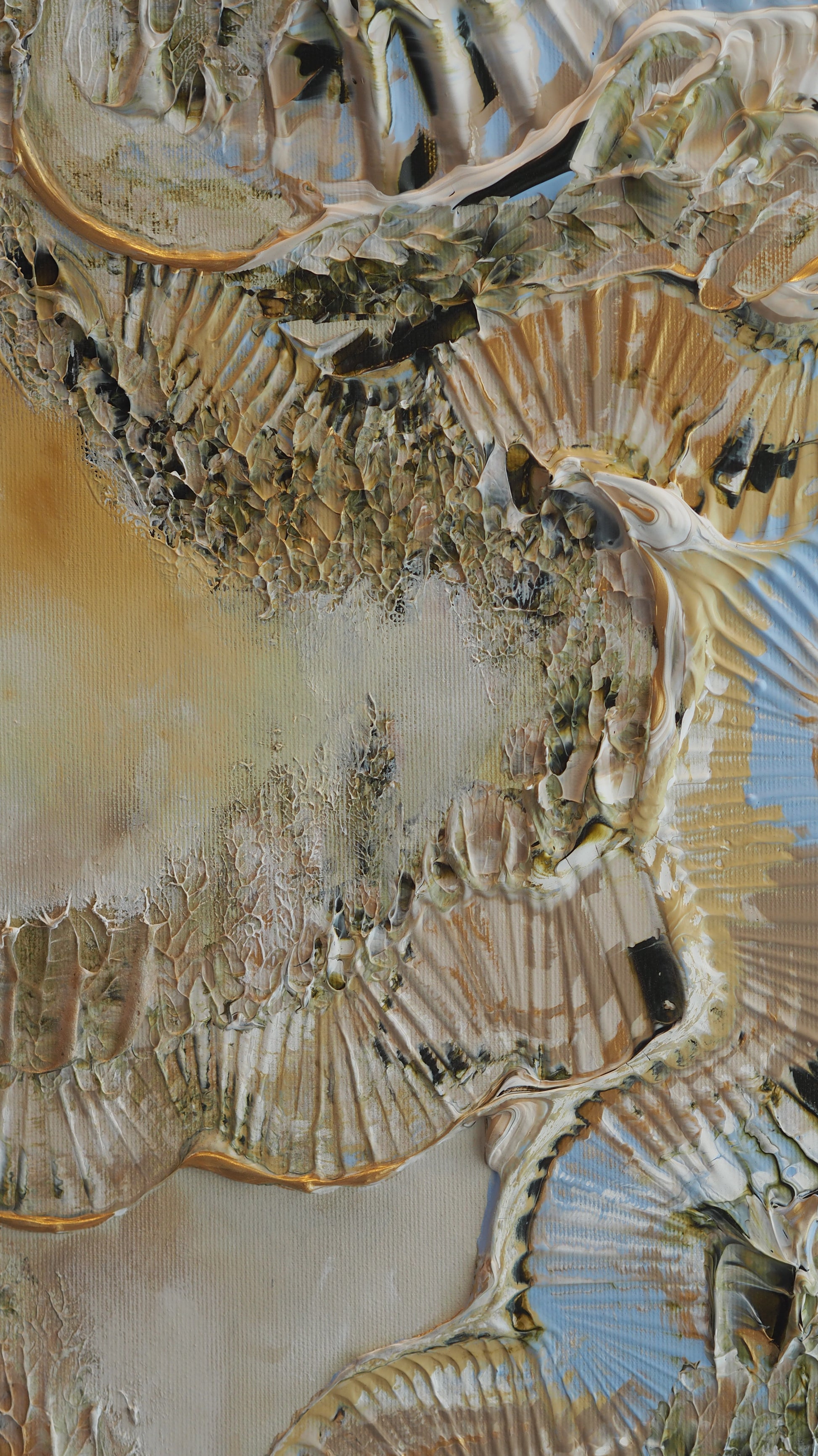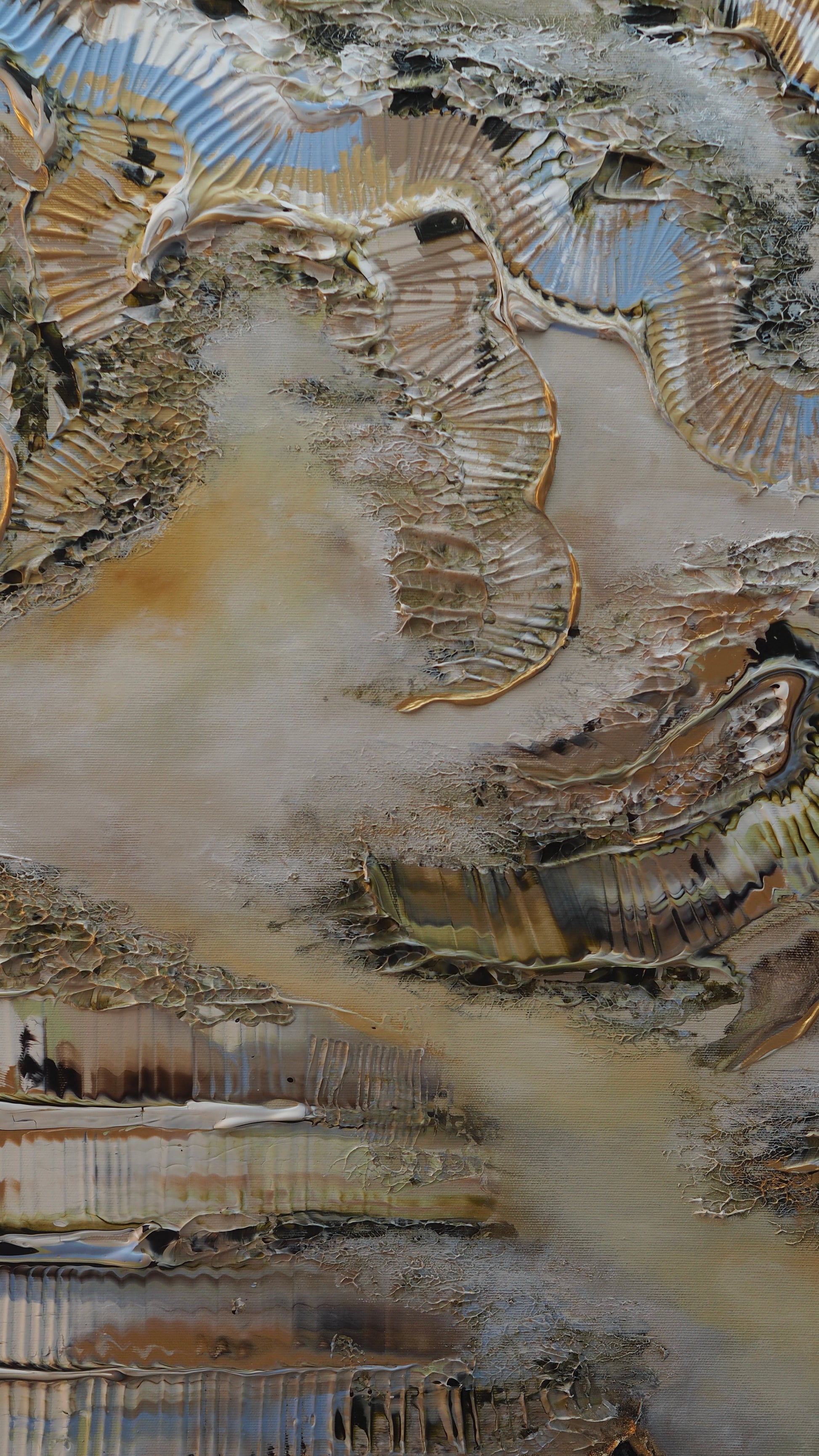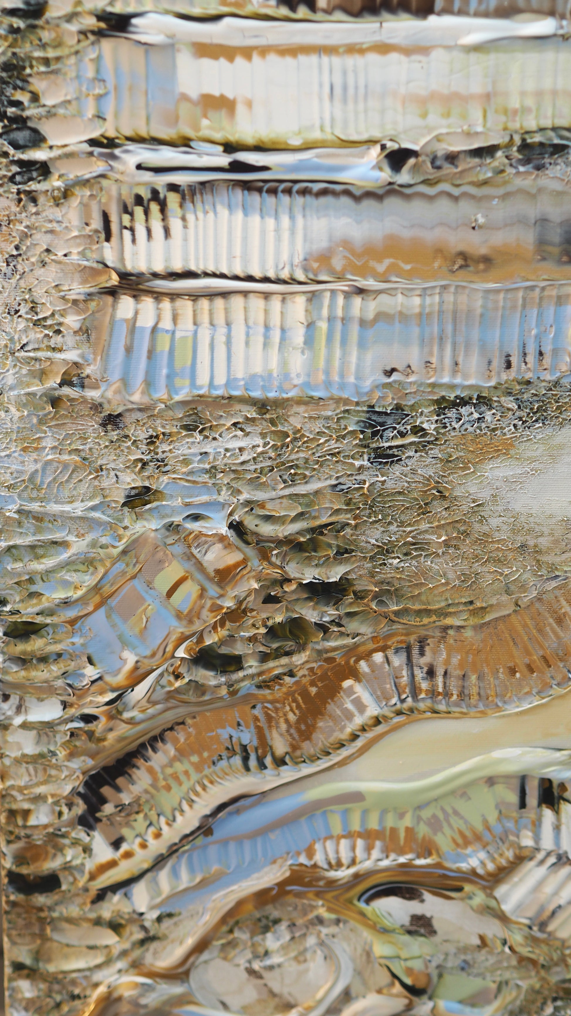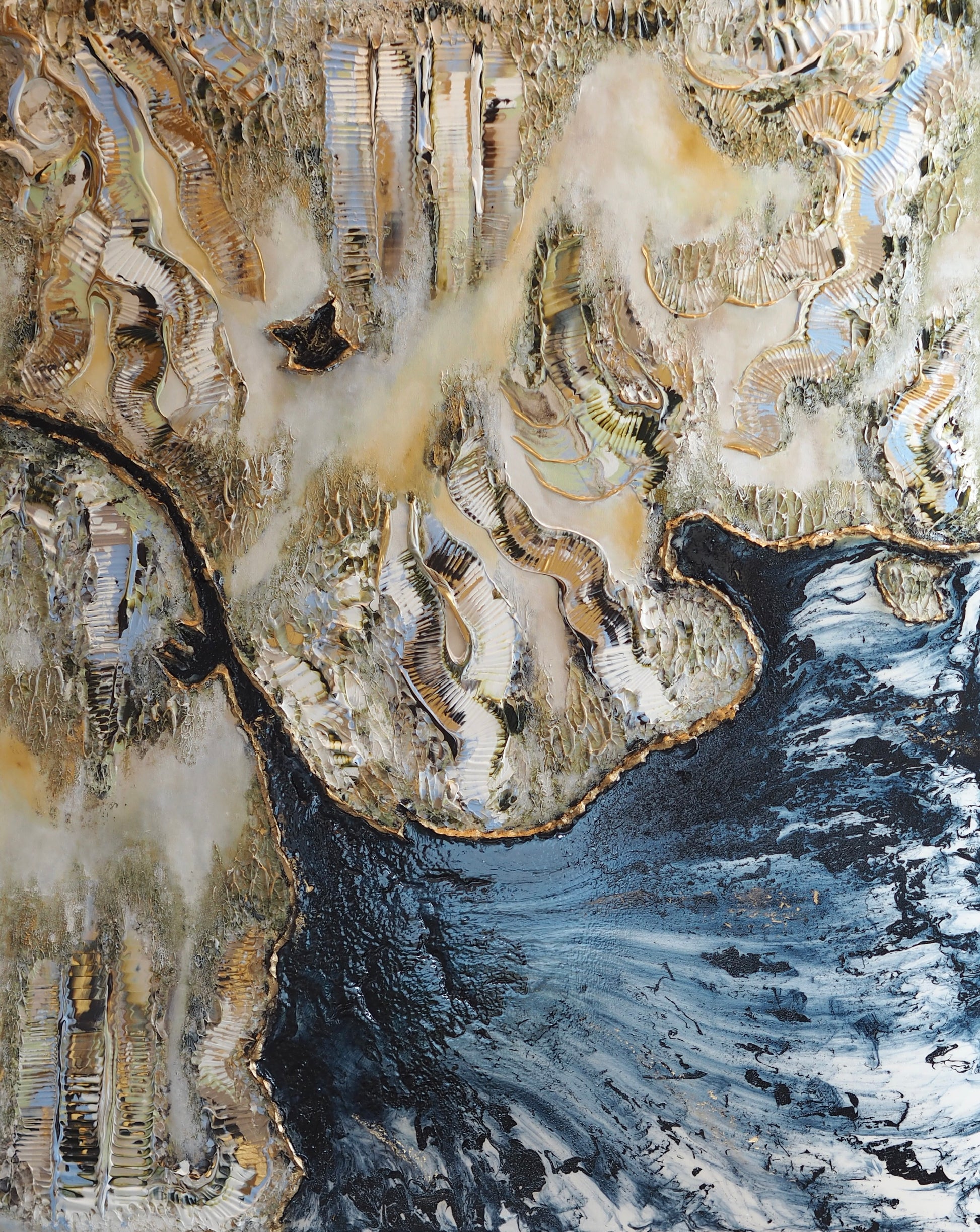 Göteborgskär skildrar en vy över Göteborg sedd från ett fågelperspektiv, där stadens konturer och närheten till vattnet fångats från ovan. Genom lager av akryl och oljefärg, med mjuka övergångar och strukturerade ytor, lyfter målningen fram stadens karaktär. Ett verk som låter betraktaren upptäcka Göteborg på ett nytt och oväntat sätt.