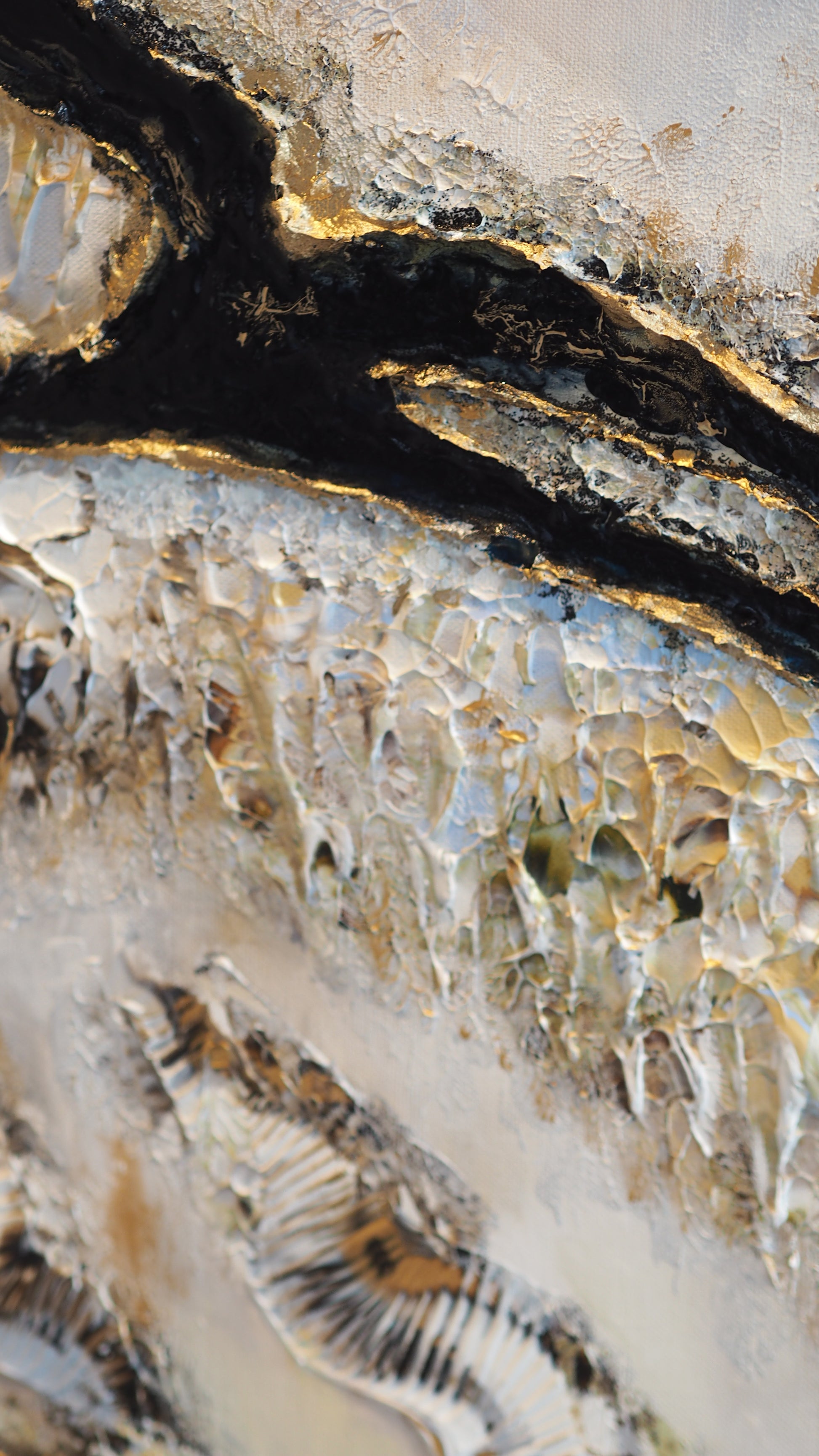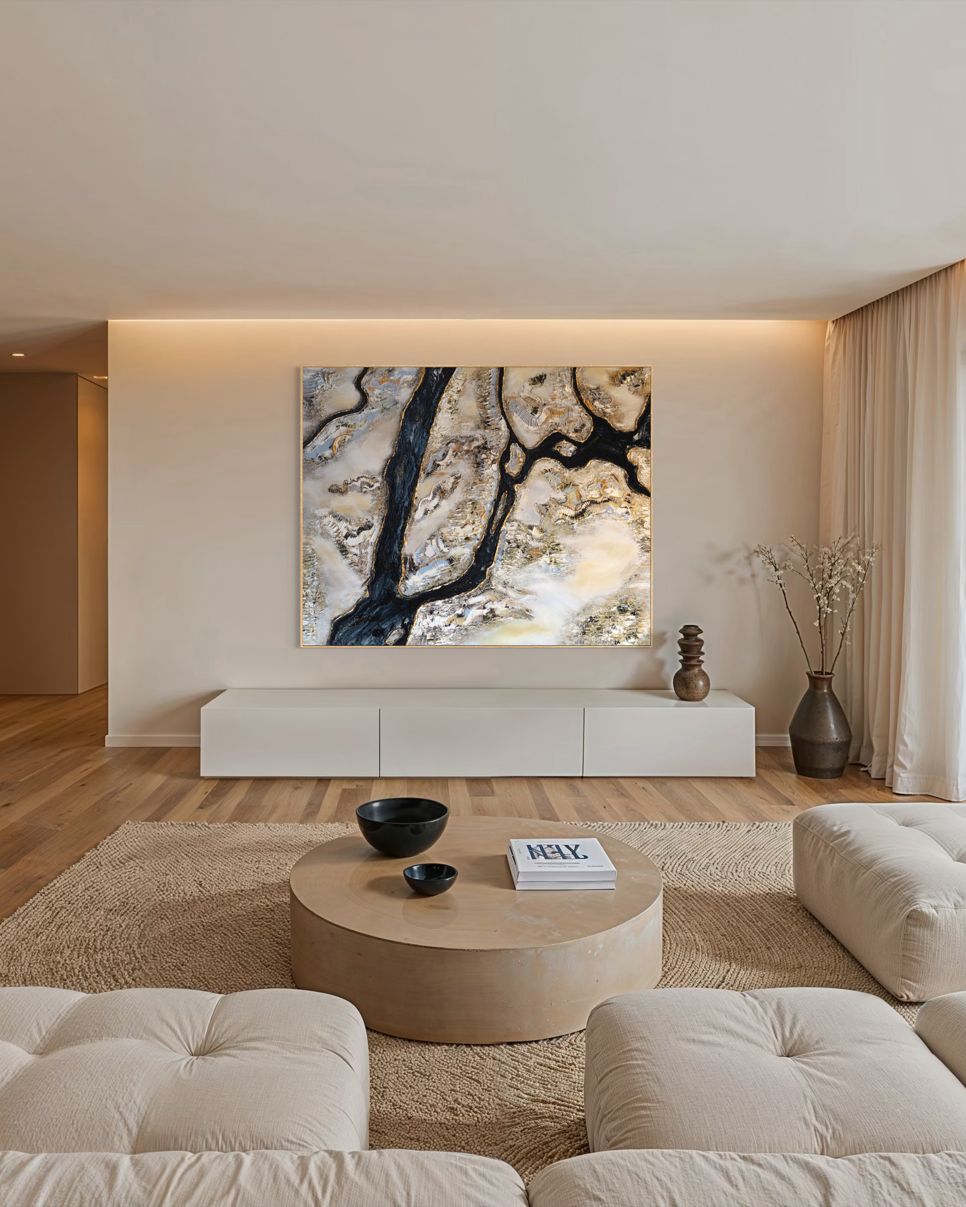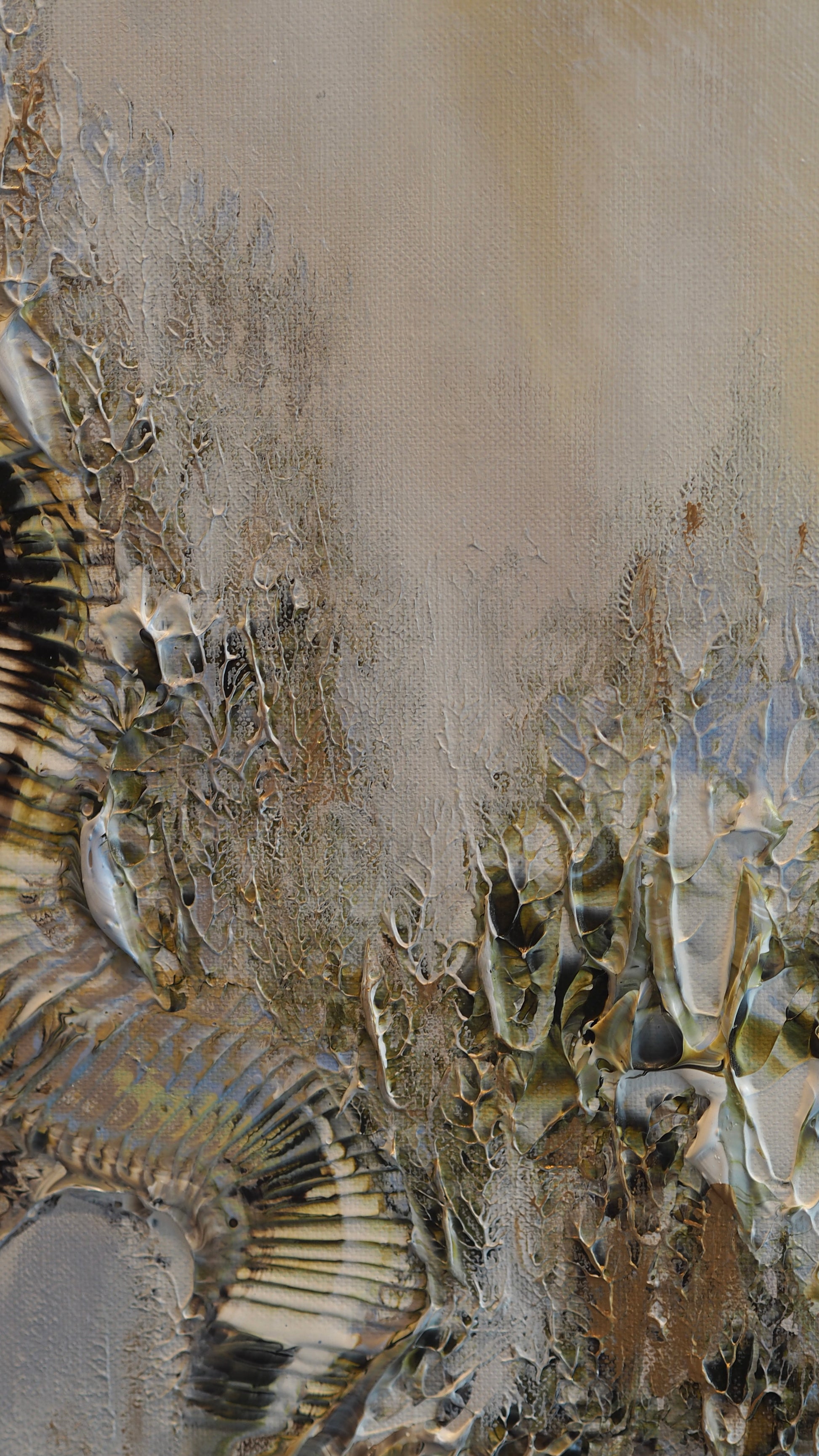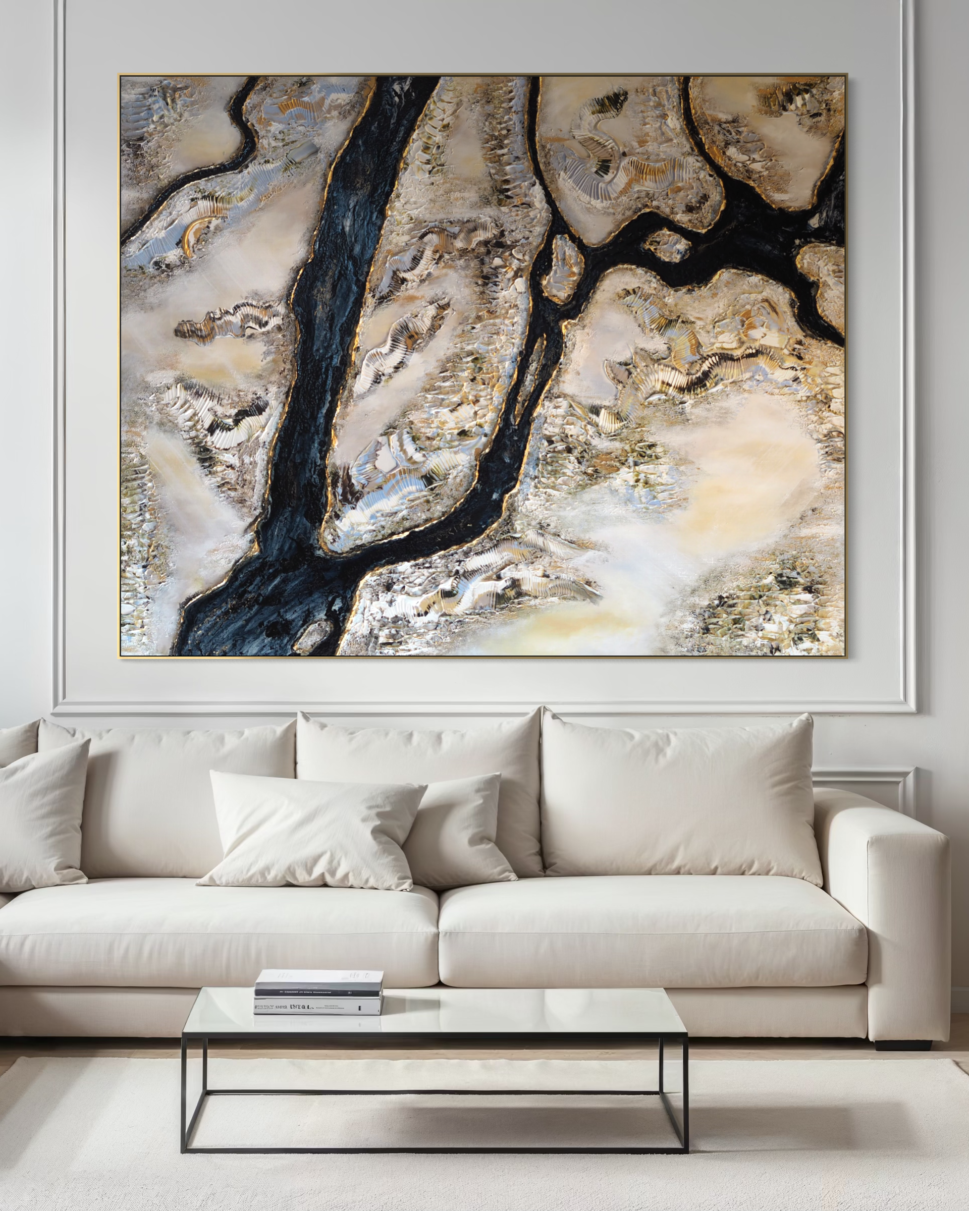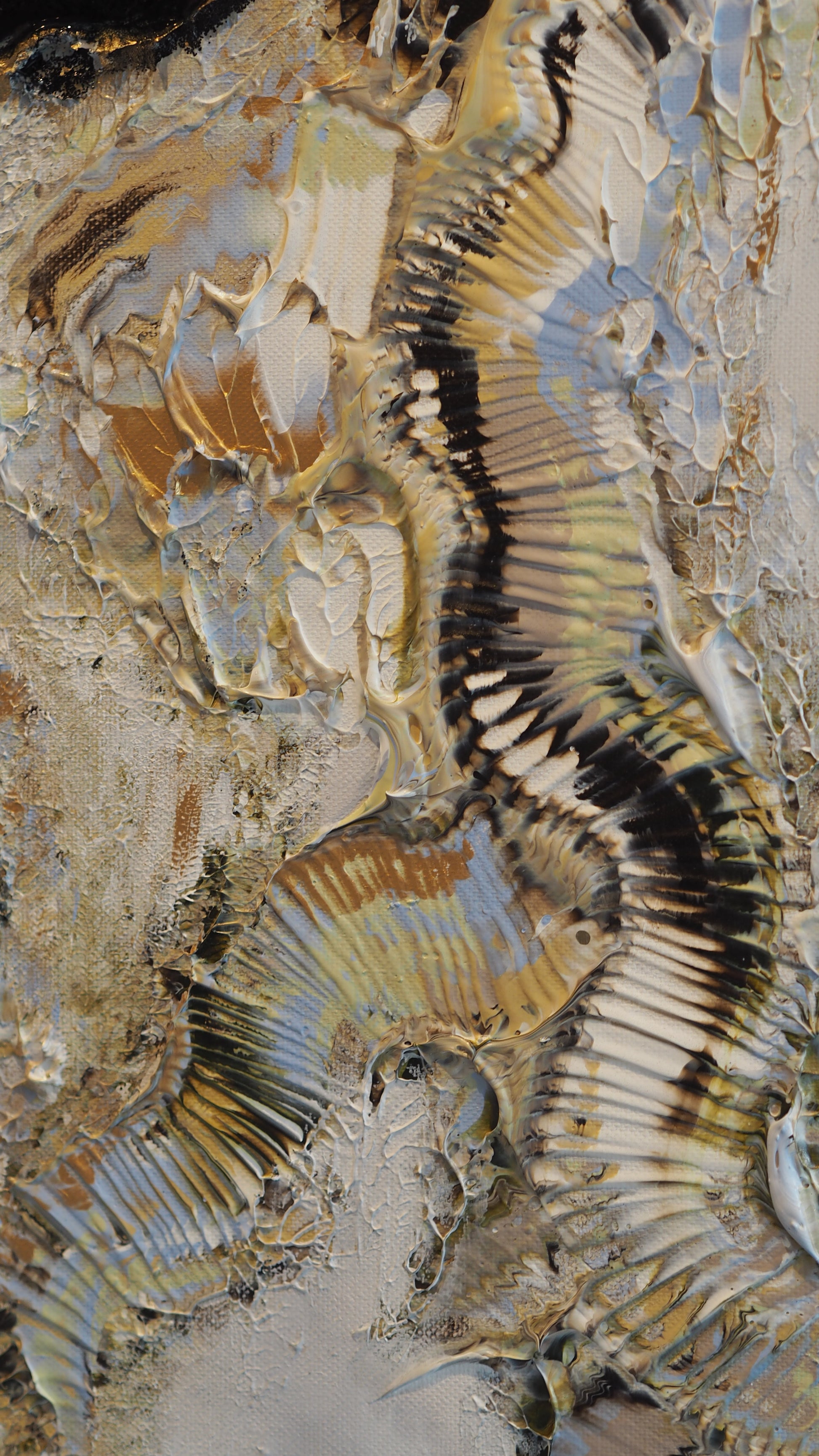 Målningen skildrar New York sett ur ett fågelperspektiv, där stadens konturer och närheten till Hudson och East River framträder i ett harmoniskt uttryck. Perspektivet ovanifrån skapar en känsla av överblick, där arkitektur, vatten och ljus smälter samman i en helhet. Genom lager av akryl och oljefärg, med mjuka övergångar och levande strukturer, byggs verket successivt upp.